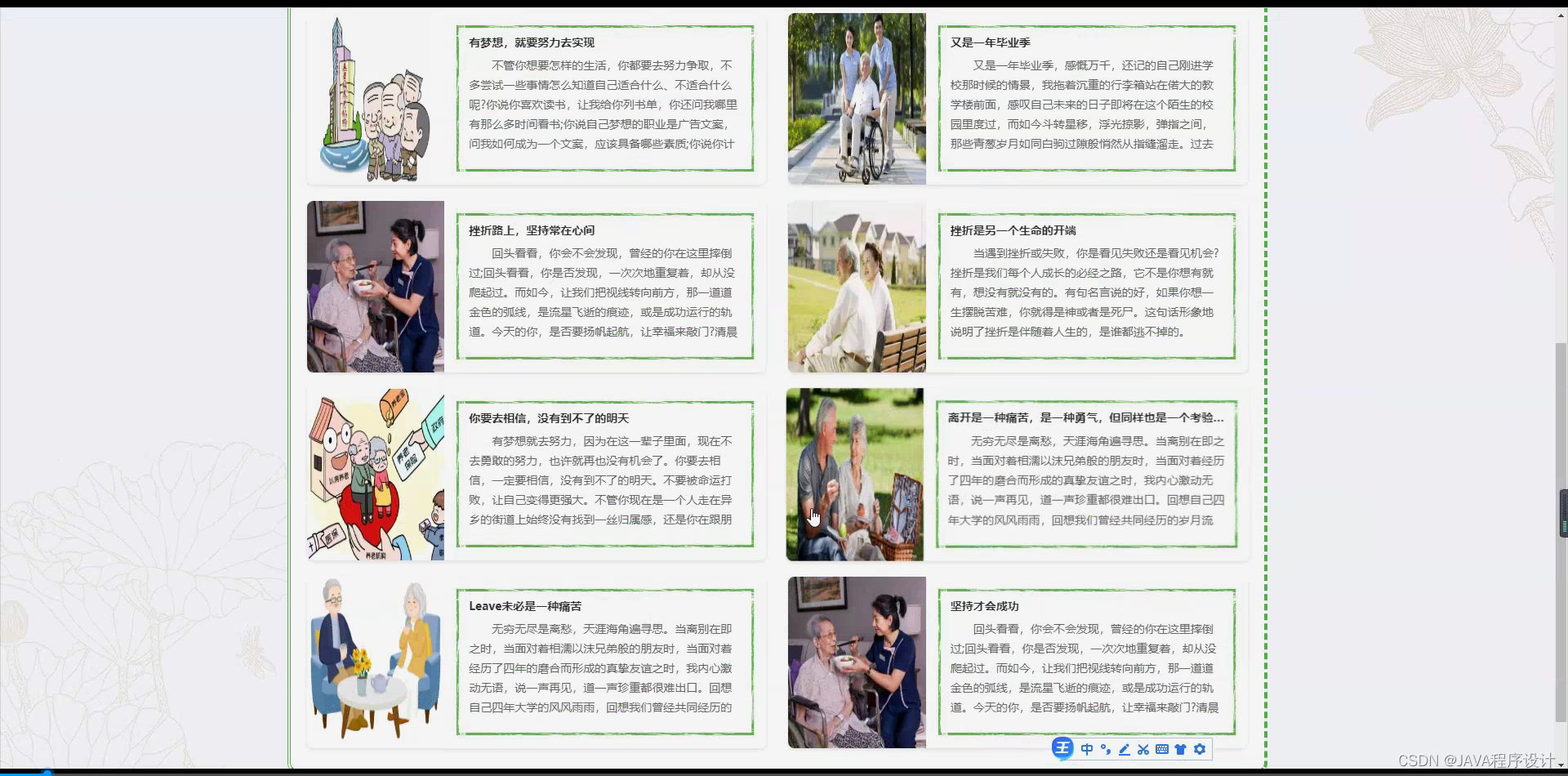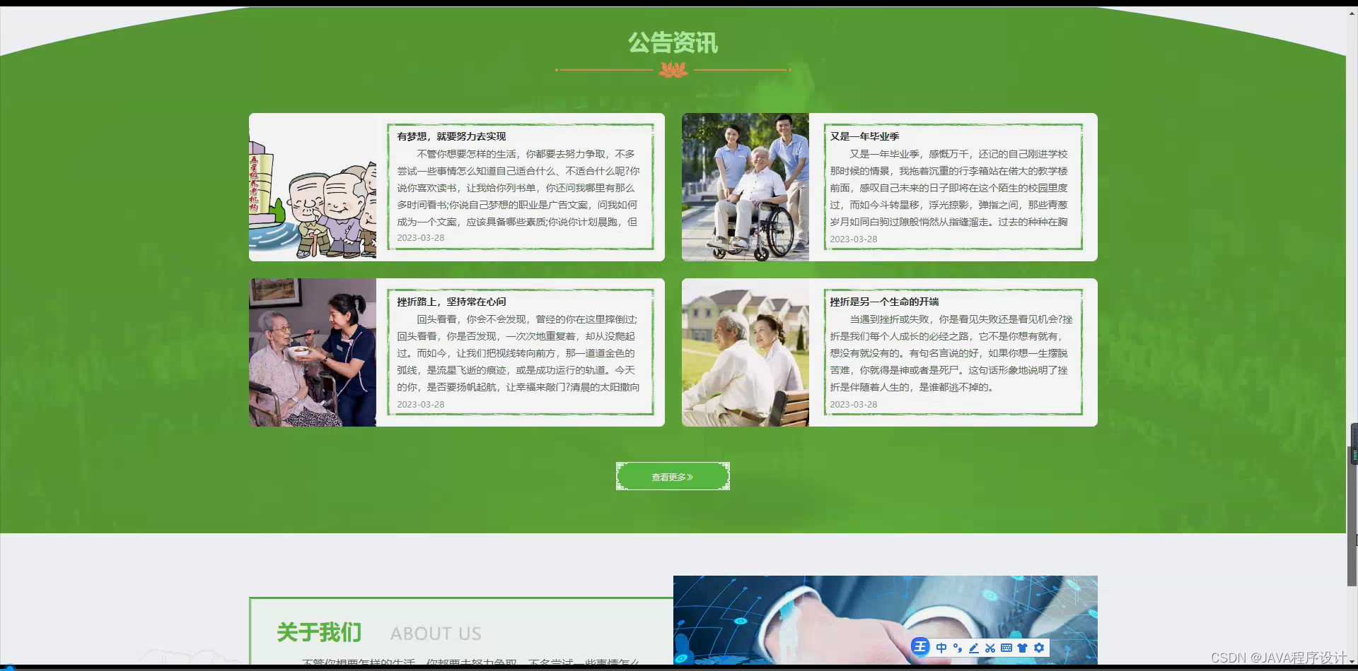 综上所述,开发一套老年活动中心管理系统具有重要的现实意义和广阔的发展前景。通过运用前端技术(HTML+CSS+JavaScript+Vue)和后端技术(Python+Flask),结合MySQL数据库,我们可以构建一个功能完善、操作简便、界面美观的老年活动中心管理系统,为老年人提供更好的服务,同时为社会经济发展做出贡献。