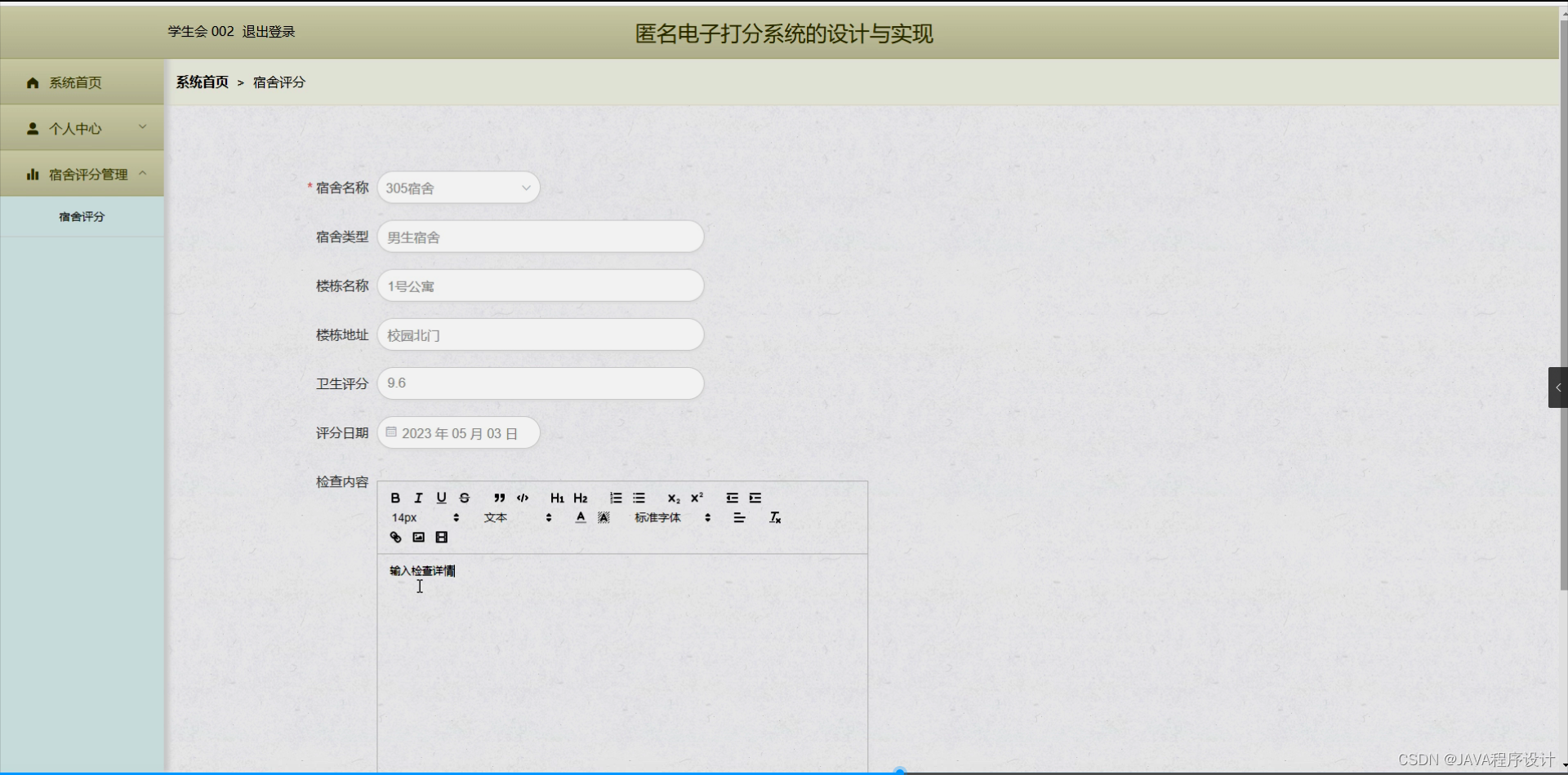 在教育评价体系中,打分是评估学生学业成绩和能力发展的重要手段。传统的打分方式通常需要面对面交流,这在一定程度上可能会影响评分的公正性,因为学生与教师之间的个人关系可能对打分结果产生影响。为了解决这一问题,匿名电子打分系统的设计与实现显得尤为重要。该系统能够提供一个匿名的环境,让教师、学生以及其他相关人员能够在不受个人关系影响的情况下进行公正的评价。通过利用现代网络技术,我们可以构建一个用户友好、操作简便、功能齐全的匿名电子打分平台,以满足当前教育评价的需求。