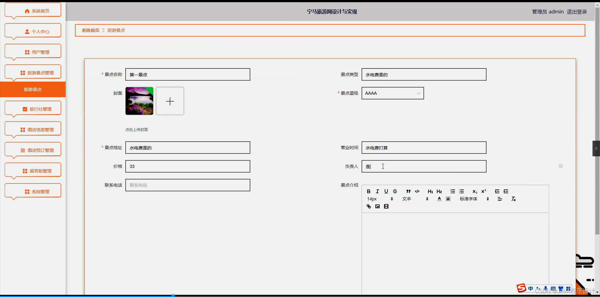 在当今数字化时代,旅游业作为一个重要的经济增长点,正经历着前所未有的变革。随着互联网技术的飞速发展,人们越来越倾向于通过网络平台来规划和预订旅游行程,这促使旅游网站成为了旅游业的重要组成部分。宁马地区以其独特的地理位置和文化背景,吸引了大量的国内外游客。然而,目前该地区的旅游信息服务尚未形成一个完善、统一的网络平台,游客在获取信息和预订服务时往往需要耗费大量时间和精力。因此,设计并实现一个专为宁马地区服务的旅游网站,不仅能够为游客提供便捷的旅游规划工具,还能促进当地旅游业的发展,提高区域经济的整体竞争力。本项目旨在通过现代前端技术(HTML、CSS、JavaScript、Vue)和后端技术(Node.js、Express)结合MySQL数据库,构建一个用户友好、功能全面的宁马旅游网,以满足游客和旅游服务提供商的需求。