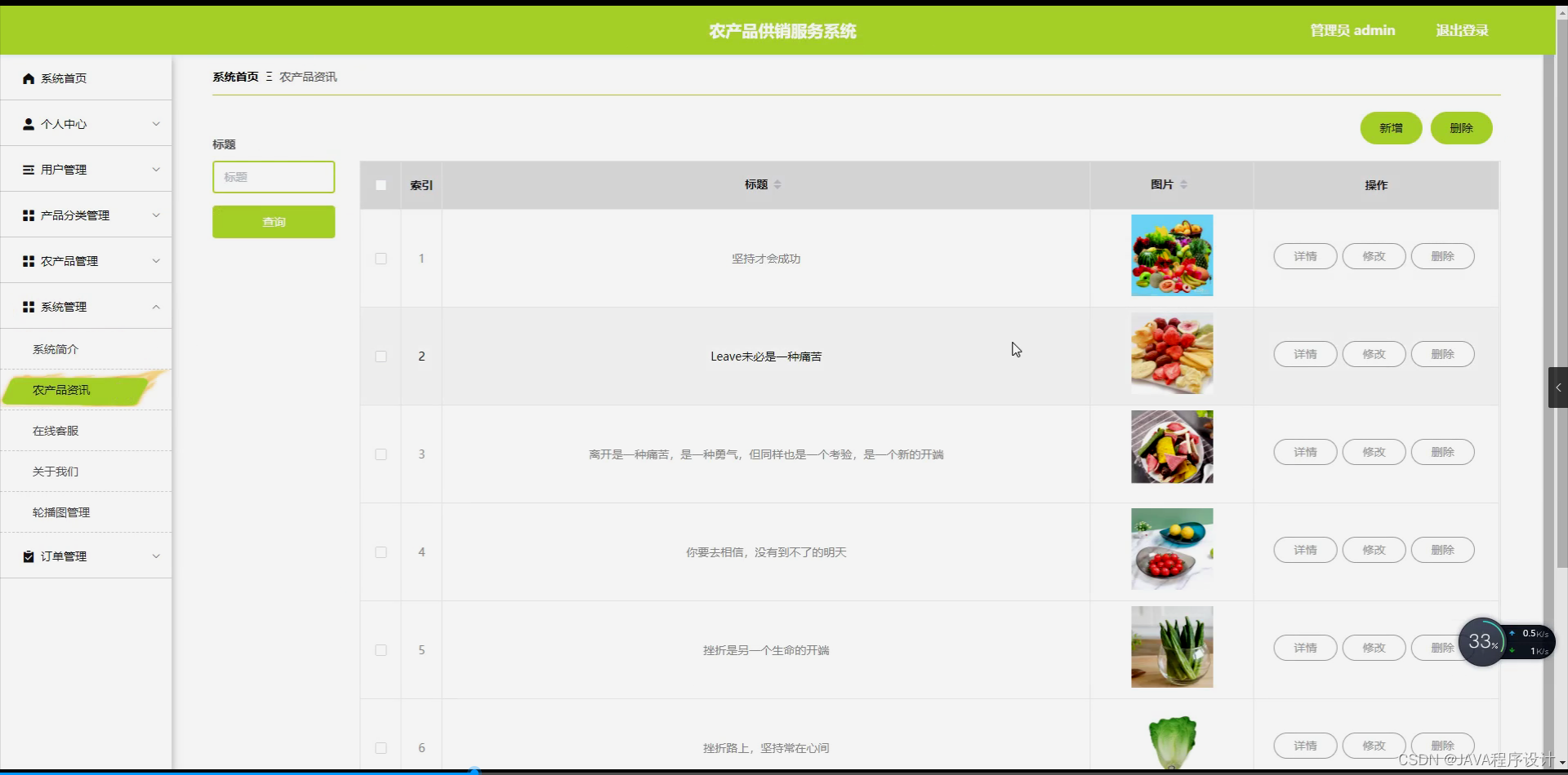 本课题旨在开发一个基于前端技术(HTML+CSS+JavaScript+Vue)和后端技术(Node.js+Express)的农产品供销服务系统,采用MySQL 5.7作为数据库。该系统将有助于解决农产品流通过程中的信息不对称、交易效率低下等问题,提高农产品市场的透明度和公平性。同时,通过引入现代化的信息技术手段,可以促进农业产业结构的优化升级,提高农民收入,助力乡村振兴战略的实施。此外,该系统还将为政府监管部门提供实时、准确的农产品市场数据,有利于政策制定和市场监管。总之,开发农产品供销服务系统具有重要的现实意义和广阔的发展前景