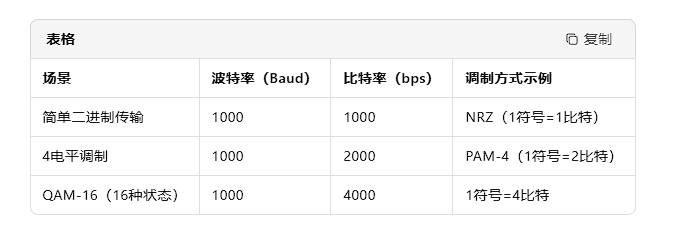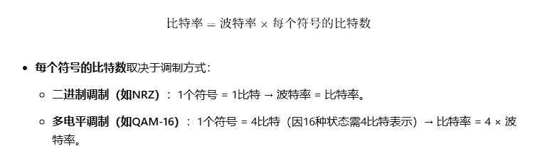 波特率:每秒切换符号的次数(符号不是指一个bit位,他可以是多个)