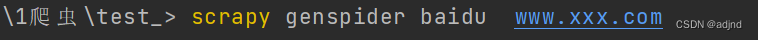进入到项目中创建一个名为baidu的爬虫文件:后面必须指定一个网址,可以随便写后面可以改
