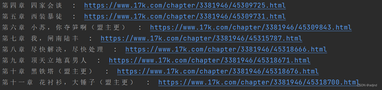 会将链接传给调度器,去重后按照队列进行请求处理,这样就可以实现从第一章页面爬到最后一章了。