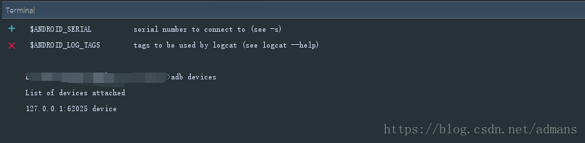 看到的这串数字就是模拟器的设备名称了:127.0.0.1:62001