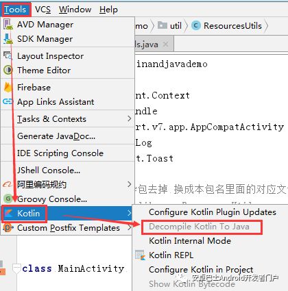 点击菜单栏Tools-->Kotlin-->Decompile Kotlin To Java 就可以了,我用的AS3.1.3,不知道为啥我的是灰色的?有人可以告诉我原因吗?
