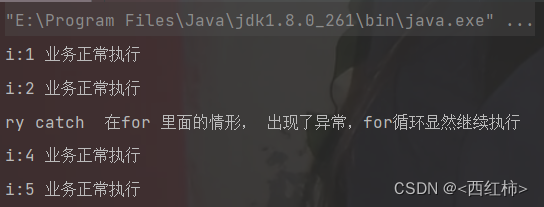 结论:try catch在for循环里面的时候,如果for循环过程中出现了异常,异常被catch抓掉,不会影响for循环继续执行