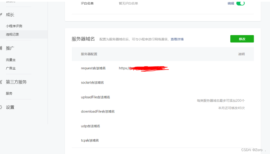 我们要在小程序设置里把request请求域名加上保存就可以了。