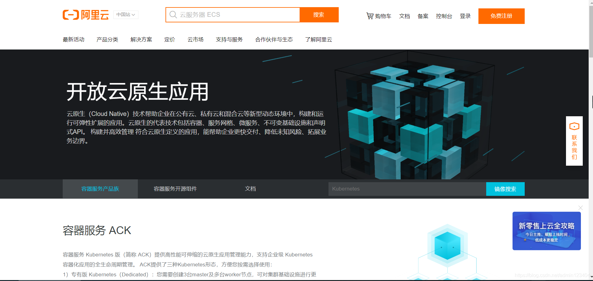 首先打开阿里云网站,如果没有账号可以注册一个,它也支持支付宝、淘宝、钉钉登录。