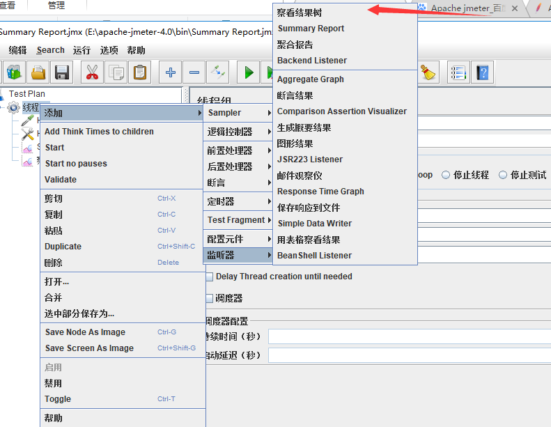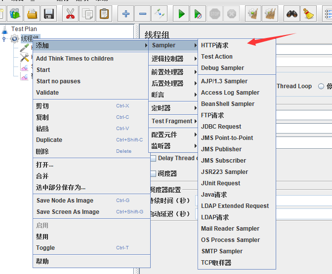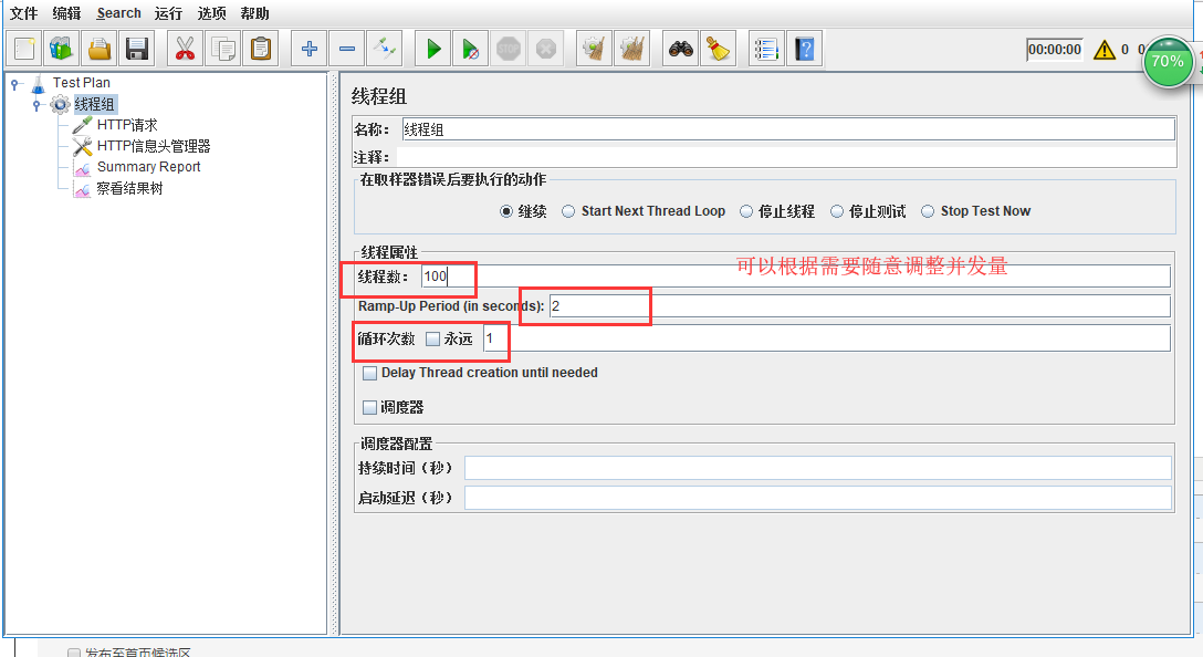7、添加好后要为线程组下的四个选项配置,根据实际情况进行设置。