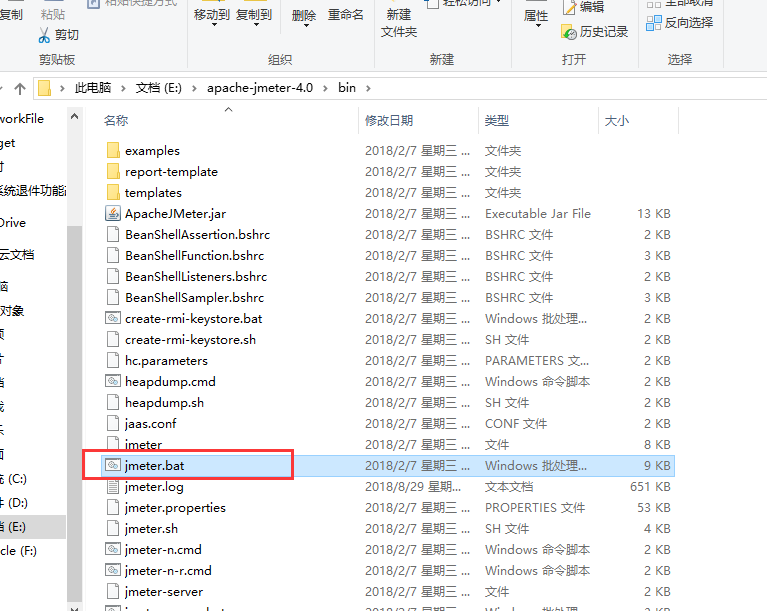 c、如果电脑已经安装了,就可以直接在解压路径下的bin\jmeter.bat启动批处理文件,来启动jmeter。