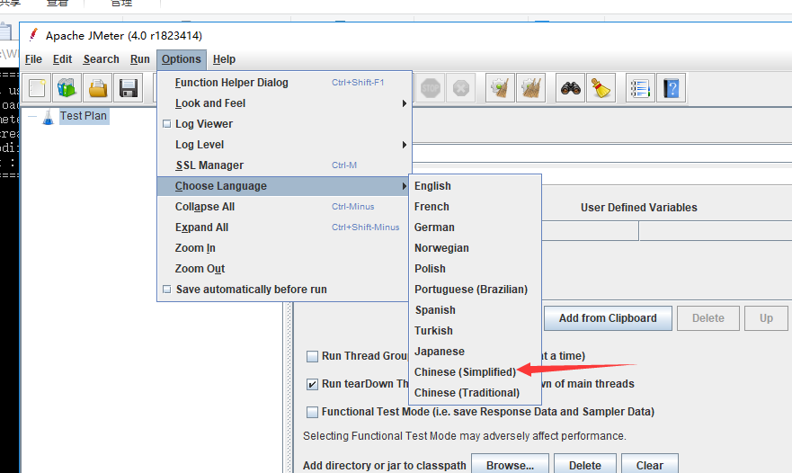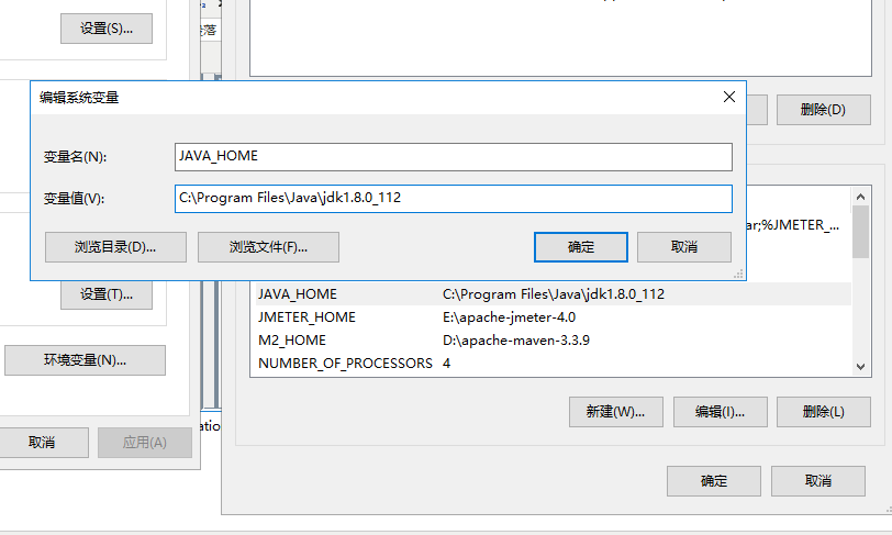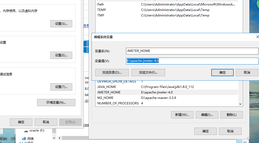 在用户变量中,新建变量名"JMETER_HOME",变量值为E:\apache-jmeter-4.0(即你解压的地址)