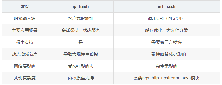 iphash和urlhash 的侧重点不一样。iphash偏向于保持连接,urlhash偏向与缓存优化