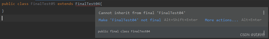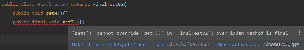 1.FinalTest03 继承了FinalTest02 ,想要重写getT()时报错。