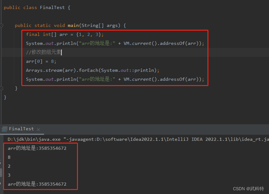 3.我们可以看到数组内容被修改了,但是地址并没有发生变化。