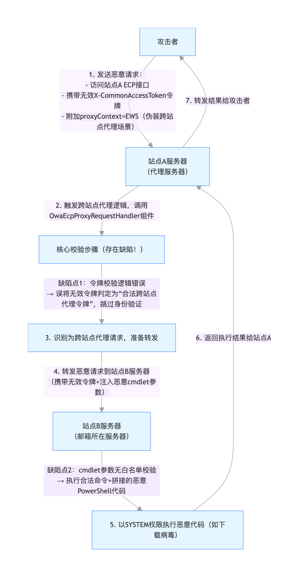 OwaEcpProxyRequestHandler组件的X-CommonAccessToken解析逻辑,严格校验令牌的签名、格式和有效期,拒绝无效令牌绕过认证; - 限制命令执行范围:对 ECP 接口的