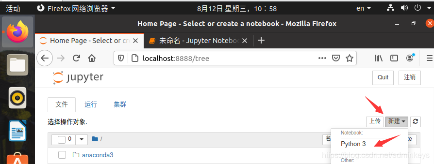 五、输入jupyter notebook即可进入jupyter home page