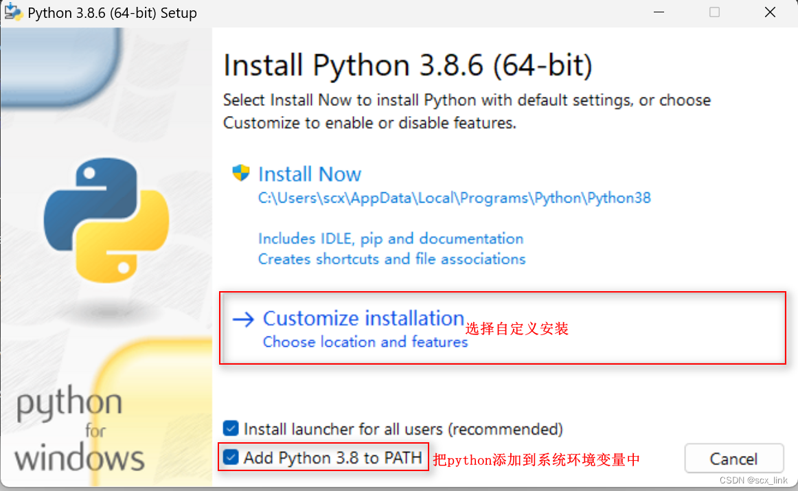 点击Customize installation 进入下一步: