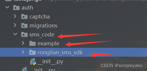 5.在django项目下新创建一个子应用auth,在auth下新建一个python模块文件夹sms_code,将上面两个文件夹复制到其中