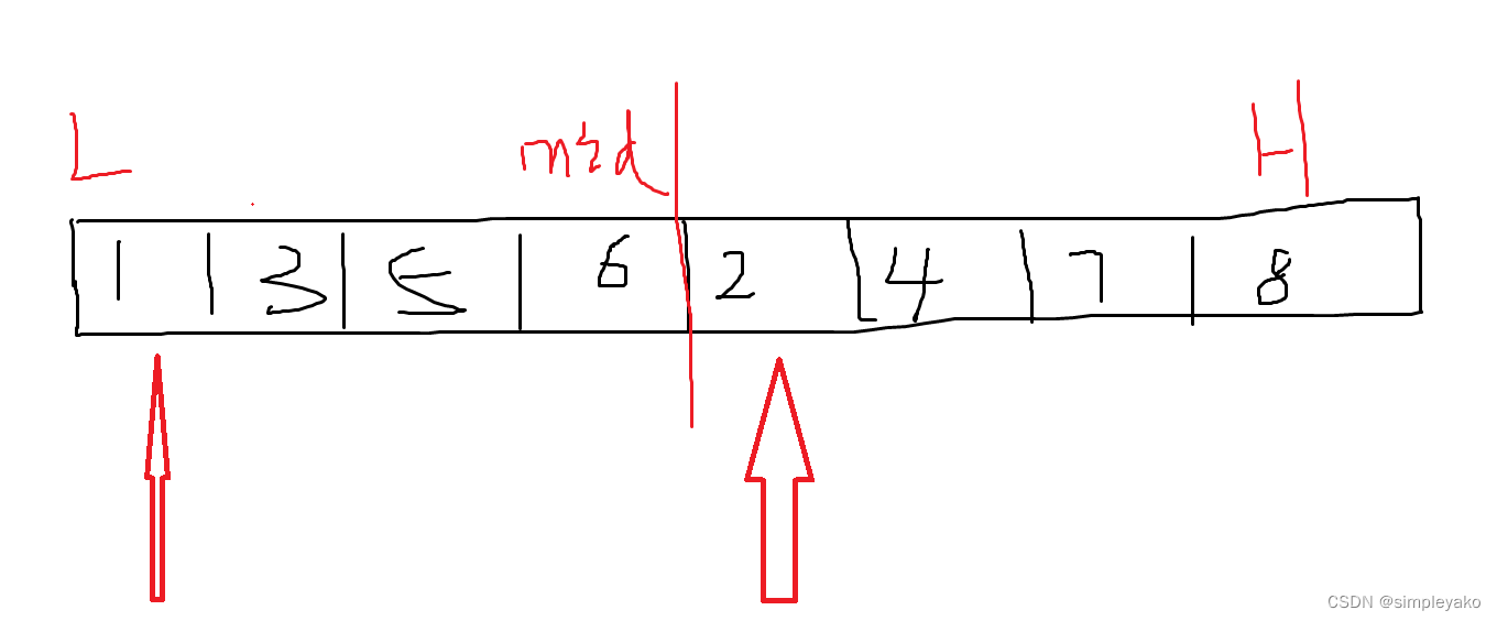 j = mid + 1 # i当前指向右边有序部分的第一个元素