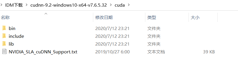 然后将这三个文件夹内的文件,分别复制到cuda的安装目录中的名称相同的文件夹内即可。