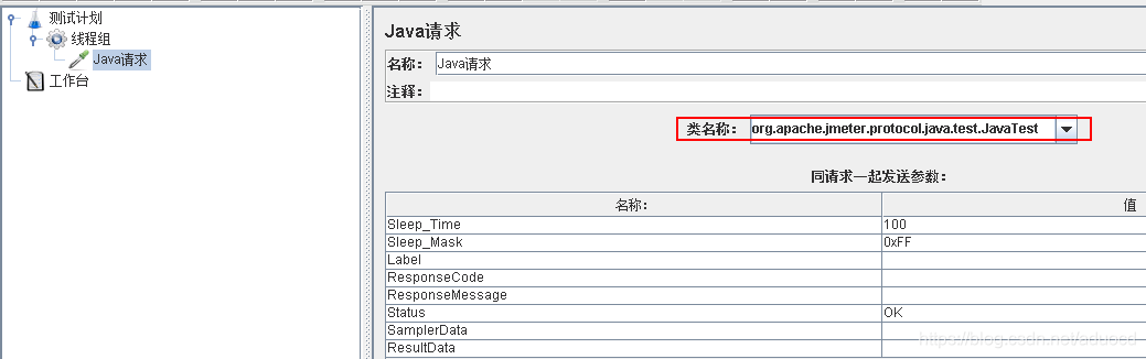 2)创建线程组,添加Java Request,选择前面做好的类。(这里的图示为示意)