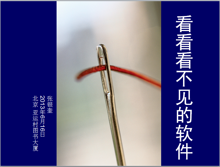 签售会上,我做了一个小讲座,题目叫《看看看不见的软件》。