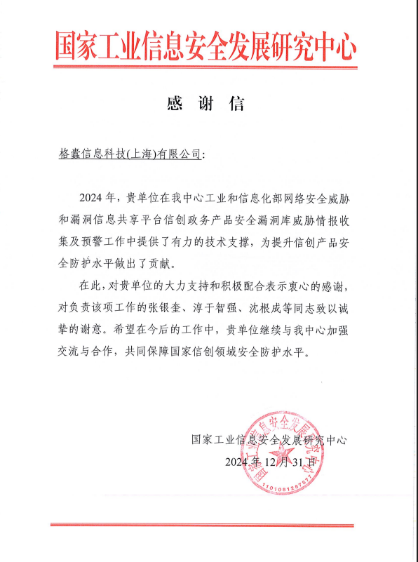 去年年底,工信部的工作人员给格蠹发了一封表扬信。