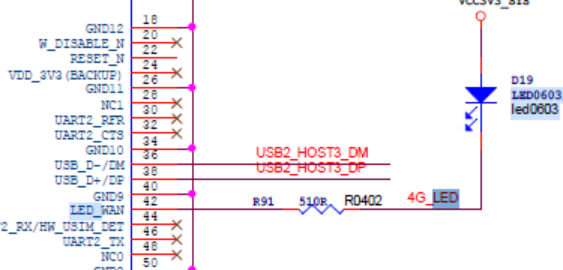 4G | 黄色 | 4G通信状态指示灯,接Mini PCIe的42脚,供4G模块使用 |