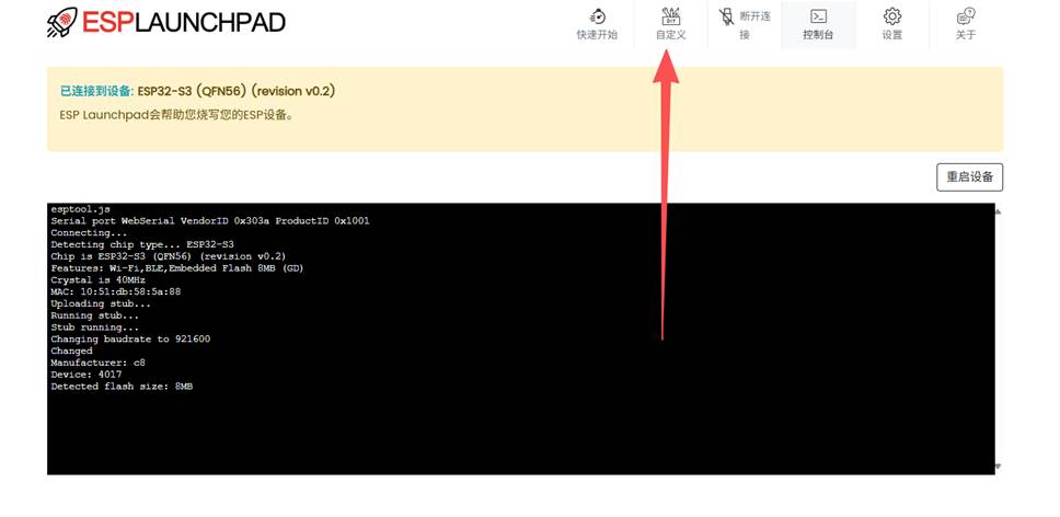 使用网页进行烧写:ESP Launchpad:https://esp.eterill.xyz/