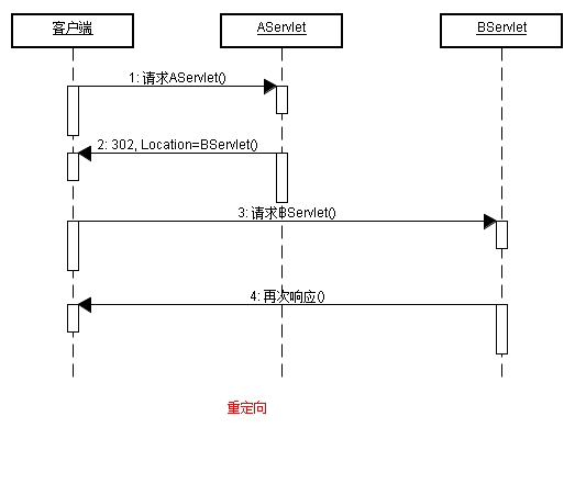 重定向就是客户端给服务端一个请求,服务端找到客户端指定的AServlet,由于该AServlet并不能处理该请求,所以,给客户端相应一个信息头:“302,Location=Bservlet”,让客户端自动的再次发出请求,不过此时的请求地址却是BServlet。所以,重定向后的地址栏是,