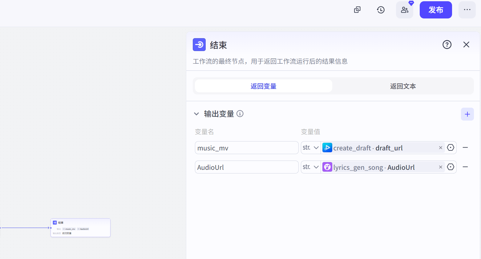 {"type":"coze-workflow-clipboard-data","source":{"workflowId":"7519754361170313242","flowMode":0,"spaceId":"7509430949264883712","isDouyin":false,"host":"www.coze.cn"},"json":{"nodes":[{"id":"149848","type":"4","meta":{"position":{"x":383.09821993723324,"y":-29.950737336771425}},"data":{"nodeMeta":{"description":"音乐生成插件,可以根据用户输入或歌词生成歌曲","icon":"https://p3-flow-product-sign.byteimg.com/tos-cn-i-13w3uml6bg/889d3036784d433ab6247768a15d82c3~tplv-13w3uml6bg-resize:128:128.image?rk3s=2e2596fd&x-expires=1750670936&x-signature=FlPB5CK9y9OcRHg122zT7R0F8uw%3D","subtitle":"音乐生成:lyrics_gen_song","title":"lyrics_gen_song"},"inputs":{"apiParam":[{"input":{"type":"string","value":{"content":"7459737514975428658","rawMeta":{"type":1},"type":"literal"}},"name":"apiID"},{"input":{"type":"string","value":{"content":"lyrics_gen_song","rawMeta":{"type":1},"type":"literal"}},"name":"apiName"},{"input":{"type":"string","value":{"content":"7449356525468090378","rawMeta":{"type":1},"type":"literal"}},"name":"pluginID"},{"input":{"type":"string","value":{"content":"音乐生成","rawMeta":{"type":1},"type":"literal"}},"name":"pluginName"},{"input":{"type":"string","value":{"content":"","rawMeta":{"type":1},"type":"literal"}},"name":"pluginVersion"},{"input":{"type":"string","value":{"content":"","rawMeta":{"type":1},"type":"literal"}},"name":"tips"},{"input":{"type":"string","value":{"content":"","rawMeta":{"type":1},"type":"literal"}},"name":"outDocLink"}],"inputParameters":[{"name":"Lyrics","input":{"type":"string","value":{"type":"ref","content":{"source":"block-output","blockID":"100001","name":"geci"},"rawMeta":{"type":1}}}},{"name":"Gender","input":{"type":"string","value":{"type":"ref","content":{"source":"block-output","blockID":"100001","name":"sex"},"rawMeta":{"type":1}}}},{"name":"Genre","input":{"type":"string","value":{"type":"ref","content":{"source":"block-output","blockID":"100001","name":"qufeng"},"rawMeta":{"type":1}}}},{"name":"Mood","input":{"type":"string","value":{"type":"ref","content":{"source":"block-output","blockID":"100001","name":"qinggan"},"rawMeta":{"type":1}}}}],"settingOnError":{"processType":1,"timeoutMs":180000,"retryTimes":0}},"outputs":[{"type":"float","name":"code","required":false,"description":"错误码"},{"type":"object","name":"data","schema":[{"type":"object","name":"SongDetail","schema":[{"type":"string","name":"AudioUrl","required":false,"description":"歌曲链接"},{"type":"string","name":"Captions","required":false,"description":"歌曲文本字幕"},{"type":"float","name":"Duration","required":false,"description":"歌曲时长"},{"type":"string","name":"Lyrics","required":false,"description":"歌曲歌词"}],"required":false,"description":"歌曲信息"},{"type":"float","name":"Status","required":false,"description":"任务状态"},{"type":"string","name":"TaskID","required":false,"description":"任务id"},{"type":"object","name":"FailureReason","schema":[{"type":"float","name":"Code","required":false,"description":"错误码"},{"type":"string","name":"Msg","required":false,"description":"错误信息"}],"required":false,"description":"生成失败原因"}],"required":false,"description":"返回数据"},{"type":"string","name":"log_id","required":false,"description":"日志id"},{"type":"string","name":"msg","required":false,"description":"错误信息"}]},"_temp":{"bounds":{"x":203.09821993723324,"y":-29.950737336771425,"width":360,"height":135.1},"externalData":{"icon":"https://lf3-appstore-sign.oceancloudapi.com/ocean-cloud-tos/plugin_icon/4040021524623639_1745575115756108936_T2VvqgXvVE.jpeg?lk3s=cd508e2b&x-expires=1753626015&x-signature=UH8htnMJY82j01zk4ESiSgoVrUY%3D","apiName":"lyrics_gen_song","pluginID":"7449356525468090378","pluginProductStatus":1,"pluginProductUnlistType":0,"pluginType":1,"spaceID":"7315016311652941851","inputs":[{"description":"生成歌曲的音色,可选值Warm、Bright、Husky、Electrified voice、Sweet_AUDIO_TIMBRE、Cute_AUDIO_TIMBRE、Loud and sonorous、Powerful、Sexy/Lazy","input":{},"name":"Timbre","required":false,"type":"string"},{"description":"生成指定音频时长,单位:s,生效范围[30,240]","input":{},"name":"Duration","required":false,"type":"integer"},{"description":"演唱者性别,影响生成歌曲的声音特征。可选值Male(男声)、Female(女声)","input":{},"name":"Gender","required":false,"type":"string"},{"description":"音乐曲风,决定生成歌曲的音乐风格。可选值Folk、Pop、Rock、Chinese Style、Hip Hop/Rap、R&B/Soul、Punk、Electronic、Jazz、Reggae、DJ","input":{},"name":"Genre","required":false,"type":"string"},{"description":"歌词内容,仅支持中文,5到700个字符,支持通过歌词精准生成。","input":{},"name":"Lyrics","required":true,"type":"string"},{"description":"歌曲的情感风格,影响旋律和编曲的情绪表达。可选值Happy、Dynamic/Energetic、Sentimental/Melancholic/Lonely、Inspirational/Hopeful、Nostalgic/Memory、Excited、Sorrow/Sad、Chill、Romantic","input":{},"name":"Mood","required":false,"type":"string"}],"outputs":[{"description":"错误码","input":{},"name":"code","required":false,"type":"float"},{"description":"返回数据","input":{},"name":"data","required":false,"schema":[{"description":"任务状态","input":{},"name":"Status","required":false,"type":"float"},{"description":"任务id","input":{},"name":"TaskID","required":false,"type":"string"},{"description":"生成失败原因","input":{},"name":"FailureReason","required":false,"schema":[{"description":"错误码","input":{},"name":"Code","required":false,"type":"float"},{"description":"错误信息","input":{},"name":"Msg","required":false,"type":"string"}],"type":"object"},{"description":"歌曲信息","input":{},"name":"SongDetail","required":false,"schema":[{"description":"歌曲链接","input":{},"name":"AudioUrl","required":false,"type":"string"},{"description":"歌曲文本字幕","input":{},"name":"Captions","requi