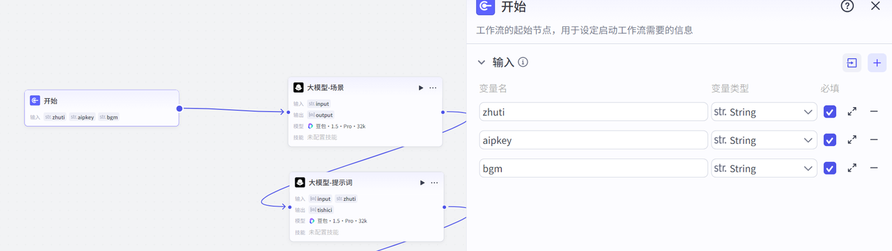 在开始节点,添加应该变量