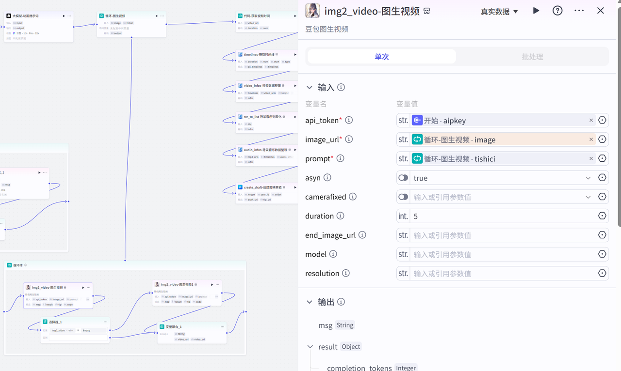 该节点主要是使用速推AIGC的图生视频插件,根据提示词将图片生成视频