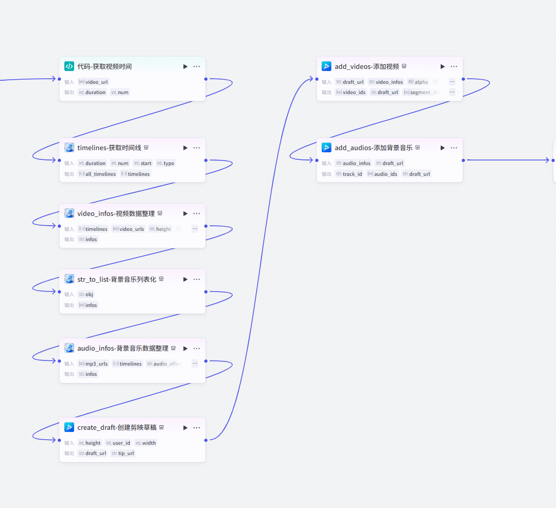 该节点主要是将视频及背景音乐等添加到剪映草稿