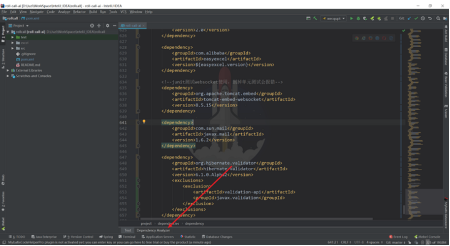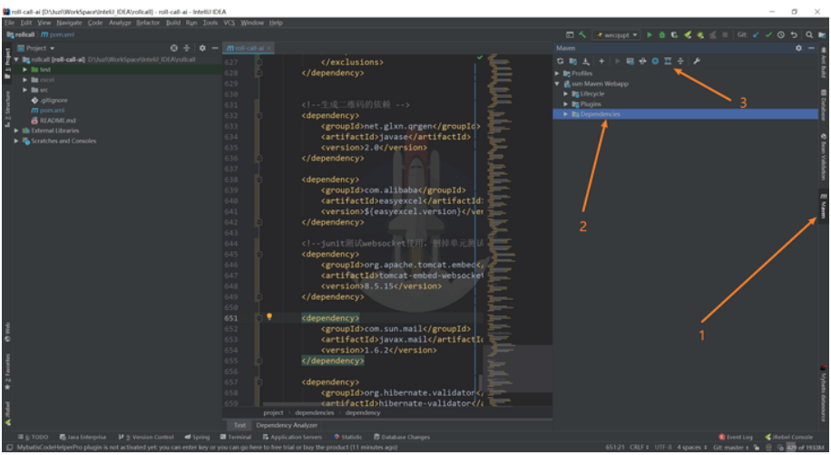 在插件安装好之后,我们打开pom.xml文件,在底部会多出一个Dependency Analyzer 选项