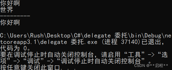 多个委托一起调用时,返回值只可接收最后一个委托的返回值