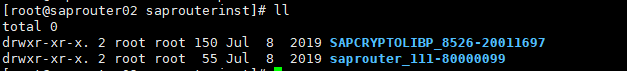[root@saprouter02 saprouter]# pwd /usr/sap/saprouter [root@saprouter02 saprouter]# ll total 8856 -rwxr-xr-x. 1 root root 5472350 Dec 16 01:06 libsapcrypto.so -rwxr-xr-x. 1 root root 499679 Dec 16 01:06 libslcryptokernel.so -rwxr-xr-x. 1 root root 166 Dec 16 01:06 libslcryptokernel.so.sha256 -rwxr-xr-x. 1 root root 1341659 Dec 16 01:07 niping -rwxr-xr-x. 1 root root 295 Dec 16 01:07 patches.mf -rwxr-xr-x. 1 root root 102 Dec 16 01:06 sapcrypto.lst -rwxr-xr-x. 1 root root 257 Dec 16 01:06 sapcrypto.mf -rwxr-xr-x. 1 root root 38098 Dec 16 01:06 sapgenpse -rwxr-xr-x. 1 root root 1688597 Dec 16 01:07 saprouter |