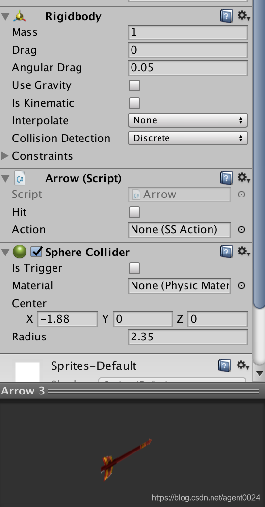 场记类FirstController控制刚开始预设的加载和位置判断,分数统计等,对于对象的位置,刚开始加载出的箭位置和弓需要一致,箭的transform.parent需要设置为弓的transform,才能保证箭和弓一起移动,当箭射出后将其transform.parent改为null即可保持其运动方向