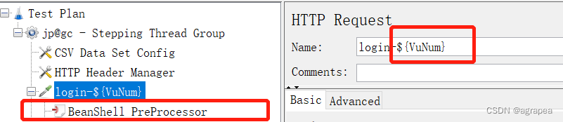 测试登录单接口,将这个取样器的Name改为${VuNum},这个变量是指当前活动的线程数量