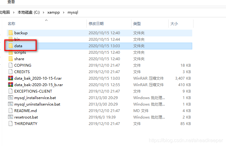 方法一:对 mysql文件内的 data文件夹 进行备份