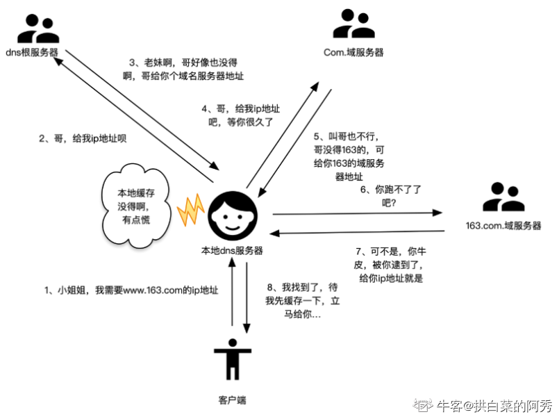 (5) (最后还是没找到)本地DNS服务器向域名解析服务器取进行查询。
