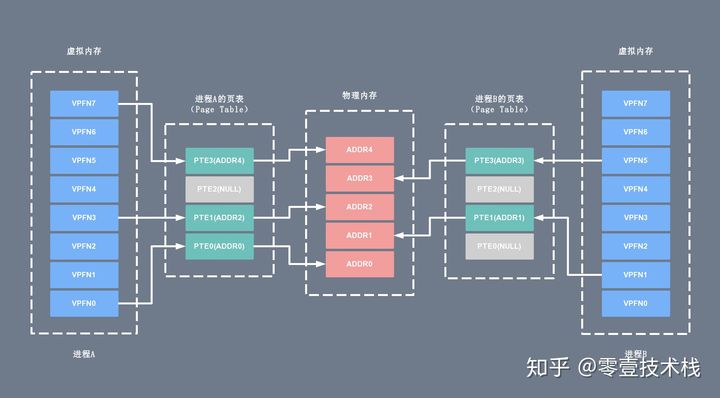 - 系统为这块虚拟地址创建的内存映射(Memory Mapping),并将它放进该进程的页表(Page Table)