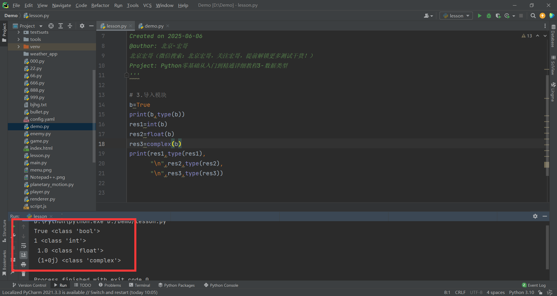 3.4其他类型 -> 数字型(bool/float/int/complex)