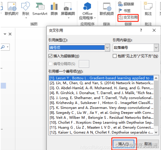 2、设置交叉引用,插入正文位置