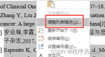 首先选中全部参考文献,右键选择“调整列表缩进”