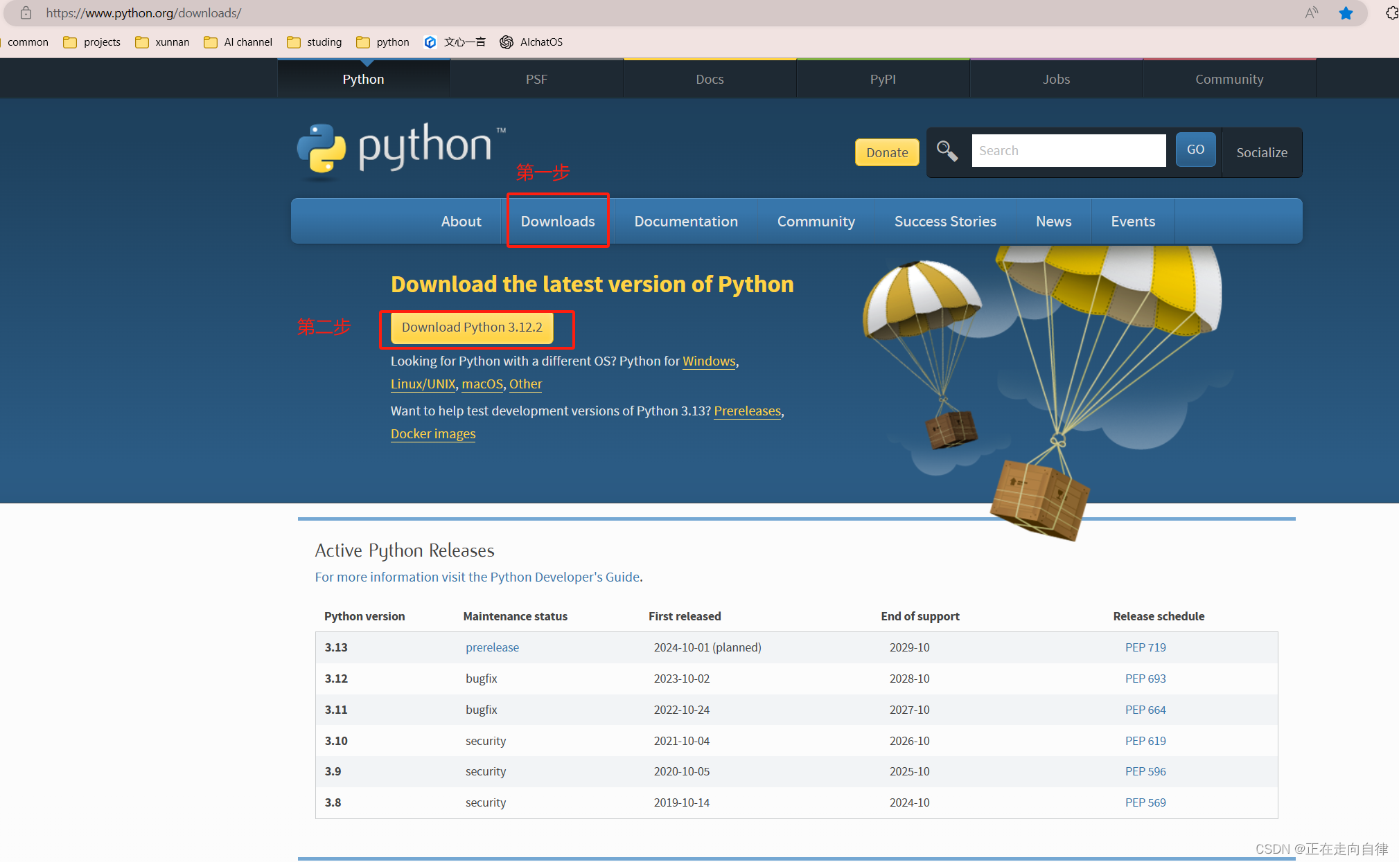 下载后如下图所示,目前最新的版本3.12.2(2024年3月3日操作)