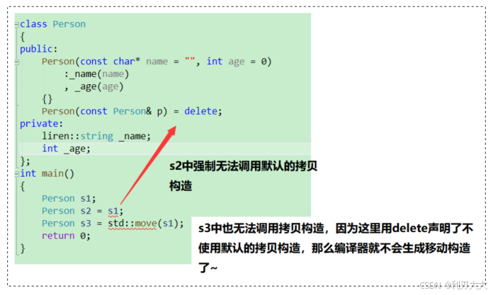 Person(Person&& p) = default; // 所以利用=default强制使用默认的移动构造