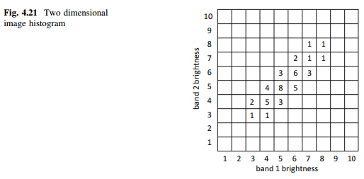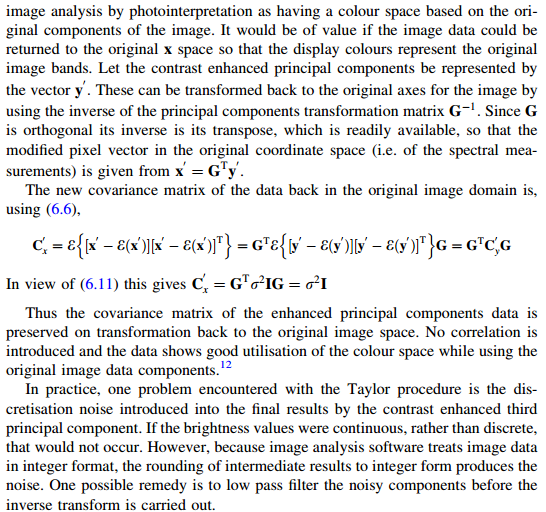 Perform a principal components transformation of the data shown in Fig. 4.21 and then produce a simple linear contrast stretch on each of the components separately. Compare the result to that from Prob. 4.3.