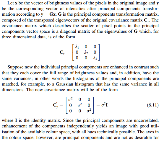 原理:主成分拉伸,(使主成分上的数据方差相等,进行高斯直方图匹配,再投影到原坐标)