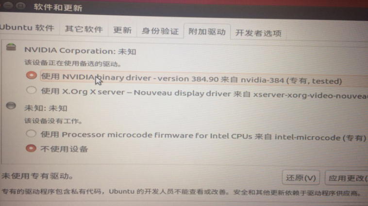 然后进入系统,系统设置-Software &Updates-附加驱动